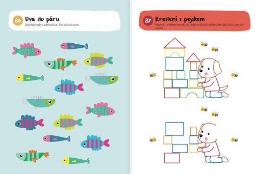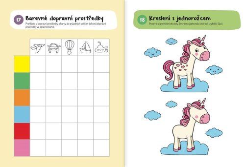Tento zábavný sešit plný aktivit pomáhá dětem rozvíjet logické uvažování, představivost a jemnou motoriku. Potřebuješ jen tužku a pastelky. Hledání rozdílů, sudoku, vybarvování podle zadání, základy počítání a spoustu dalších her a úkolů najdeš v tomto zábavném sešitu. Úlohy hýří barvami a hravým a přirozeným způsobem děti učí zdokonalit se v kreslení a obtahování, což jim pozvolným způsobem pomáhá zlepšit jemné motorické schopnosti a připravit je tak na psaní. Sešit obsahuje přesně 100 her, u kterých děti stráví zábavné chvíle a zapojí svou kreativitu a představivost.