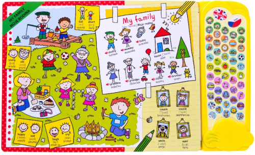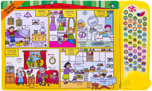 Výuková knížka se zvuky pro nejmenší, určená k osvojení základních slovíček ve dvou jazycích – češtině a angličtině.