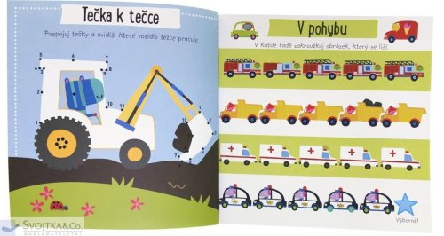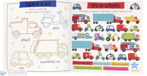 Knížka plná pěnových nálepek se spoustou vozidel a dopravních prostředků - více než 75 pěnových nálepek a další zábavné hry procvičí chytré hlavičky každého farmáře nebo farmářky. Vydej se do zábavného světa vozidel a dalších dopravních prostředků. V této krásně ilustrované knížce na tebe čeká více než 75 různých pěnových nálepek vlaků, náklaďáků, sanitek, a dokonce i raket! Kromě zábavných her s nálepkami je kniha plná spojovaček, hledání rozdílů nebo zapeklitých bludišť, které můžeš dozdobit samolepkami a dokreslit dle vlastní fantazie. A po splnění každého úkolu si můžeš za odměnu nalepit hvězdičku na určené místo. A nálepky, které nevyužiješ, můžeš nalepit, kamkoliv budeš chtít.