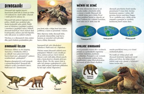 Objev vzrušující svět dinosaurů s tímto atlasem se samolepkami, jež září ve tmě! Prehistorický svět byl plný úžasných tvorů, od děsivého tyranosaura přes ostnatého stegosaura až po mírného obra diplodoka. Při čtení tohoto samolepkového atlasu se dozvíš základní informace a zajímavosti o různých dinosaurech. K jednotlivým dinosaurům dolepíš správné samolepky. Pak můžeš svůj pokoj přeměnit v dechberoucí dinopark – na rozkládací plakát s obří nástěnnou mapou nalepíš samolepky dinosaurů zářící ve tmě. Odhal dinosauří svět v tom pravém světle! Obsahuje velký rozkládací plakát, také přes 300 samolepek včetně 70 dinosaurů zářících ve tmě! Počet stran: 32 + 8 Vazba: Brožovaná Rok vydání: 2023 ISBN: 978-80-256-3447-9