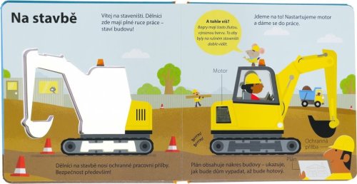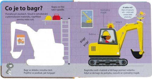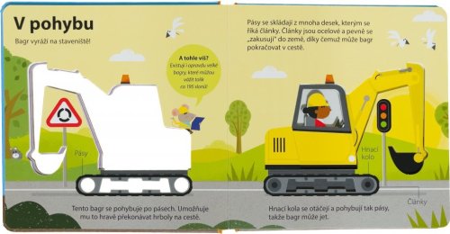 Proč je bagr tak užitečný? A z jakých dílů se skládá? Leporelo pro malé stavaře obsahuje ilustrace s výřezy a jednoduché, základní informace o bagrech.