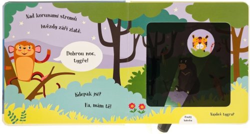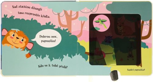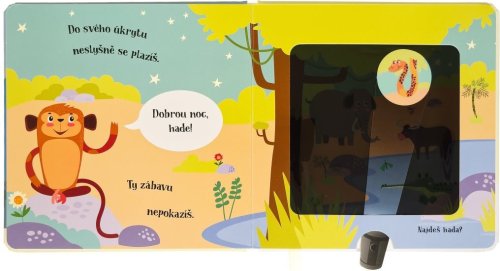 Pomoz opičce s kouzelnou baterkou objevit její zvířecí kamarády, schované v knížce! Veršované čtení, ideální na uspávání do postýlky.