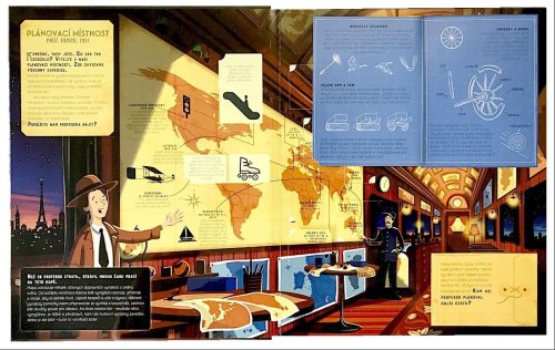 Vítejte na palubě Expresu po stopách objevů! Jen malý krůček vás dělí od napínavé a interaktivní cesty zpět časem. Stačí otevřít knížku. Ale pozor, budete muset vyřešit jednu velkou záhadu. Pomůžete posádce Expresu po stopách objevů rozluštit všechny hádanky a najít zmizelého profesora? Plnou parou vpřed za dobrodružstvím! Otevřete více než 50 okének a vydejte se po stopách velkých vynálezů z historie osobní přepravy. Objevte úžasné dopravní prostředky, od ponorek a lodí přes automobily a vlaky až po horkovzdušné balóny a letadla. Vaše cesta povede okolo celého světa, napříč staletími, nazpět časem.