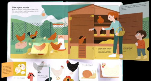 Farma je úžasné místo, které nám dává jak živočišné, tak rostlinné produkty. Pojď ji prozkoumat v této poutavé a krásně ilustrované knize s odklápěcími okénky. Je ve vejci vždy kuře? Co se vyrábí z kravského mléko a využíváme také mléko ovčí? Z čeho je kuchyňský olej? Odpovědi nejen na tyto otázky najdete v této knize s odklápěcími okénky a krásnými ilustracemi. Knihu doplňují též otázky a odpovědi, které malé zvědavce seznámí s fakty a detailními informacemi z farmy, života farmářů i hospodářských zvířat. Malí farmáři se dozvědí, že práce na farmě a péče o zvířata nikdy zcela nekončí, a je tak zapotřebí vše pečlivě plánovat a předvídat.