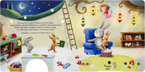 Foukni na knížku a nechej také rozzářit světélka! Foukni, rozsviť, počti si v knížce o zvířátkách, která se chystají spát, a o tom, co je čeká, než zavřou očka.