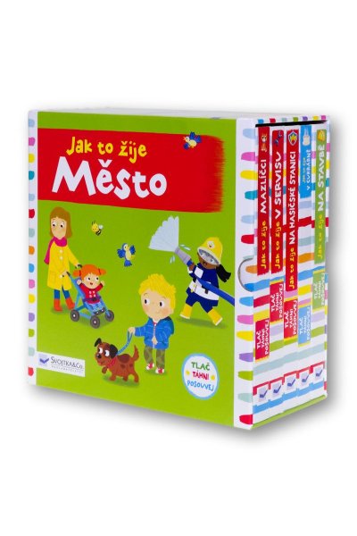 Výhodné balení pěti pohyblivých leporel ze série Jak to žije - všechny knížky jsou s oblíbenou tematikou města. Navštívíte stavbu, cukrárnu i hasičskou stanici. Podívej se do těchto rozpohybovaných leporel, jak to žije ve městě. Co se odehrává na stavbě? Co si můžeš dát dobrého v cukrárně? Kdo ti pomůže opravit auto v servisu? Jak si ve městě žijí domácí mazlíčci? A jaký důležitý úkol mají hasiči? Krabice pěti pohyblivých leporel za výhodnou cenu. Ilustrace a texty vhodné pro děti. Leporela mají pevné posuvné nebo otočné prvky, a tak si při jejich prohlížení malí čtenáři procvičí i jemnou motoriku. Objeví v knížkách celé město! Tak vzhůru do čtení, ve městě je pořádně živo.