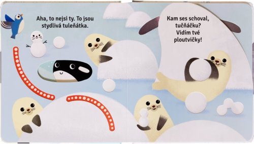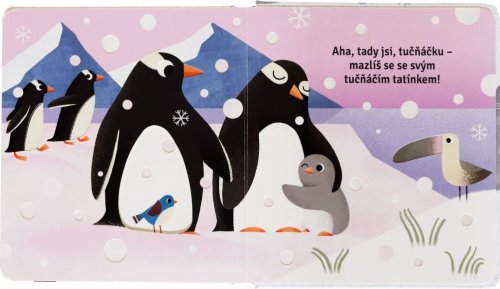 Kniha pro nejmenší děti, která jim jistě udělá radost. Užijte si společné chvíle při listování knihou a hledejte okouzlujícího tučňáčka. Je za haldou sněhu? Nebo plave v ledové vodě? Kam se schoval tentokrát? Děti jistě potěší, že mohou nakukovat skrz výřezy do dalších stránek. Šikovně umístěné výřezy navíc dávají obrázkům nový rozměr – možná není vše na obrázku takové, jak se to na první pohled zdá. Kniha je vytvořena z pevného materiálu, který vydrží i neopatrné zacházení malých nezbedníků. Tak hurá do objevování!