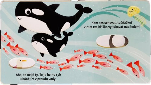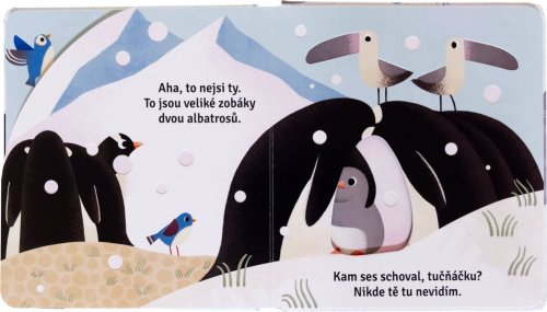 Hledej společně s námi tučňáčka, který se stále někde schovává. Otáčej stránky s výřezy a zabav se u hledání okouzlujícího tučňáčka. Najdeš ho?