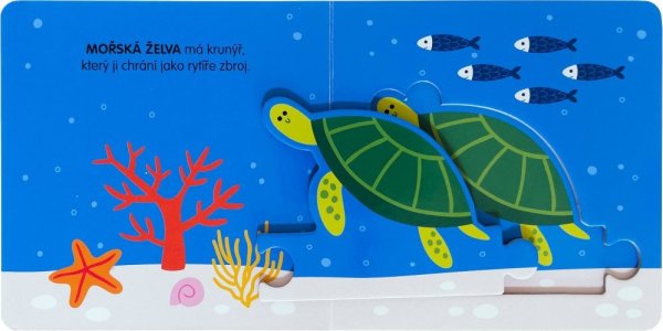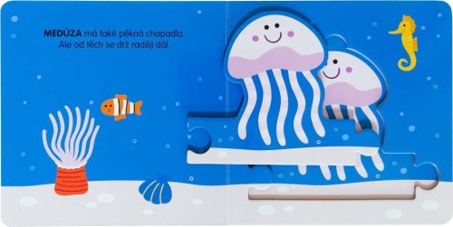 Prohlížej si knížku a bav se skládáním dílků puzzle. Zvířátka z moře se dají různě spojovat! Které bude stát v řadě jako první?