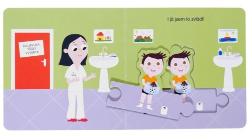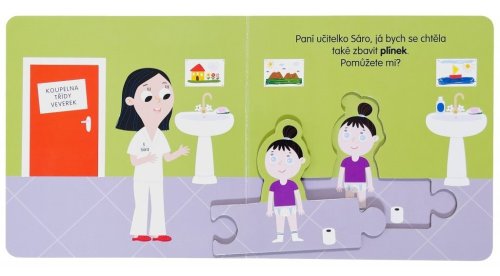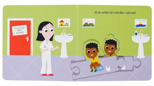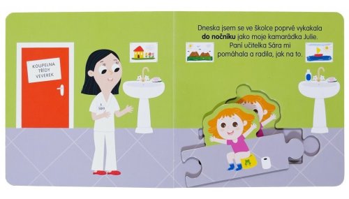 Prohlížej si knížku a bav se skládáním dílků puzzle. Obrázky dětí se dají různě spojovat! Které bude stát v řadě jako první? Skládej, hraj si, uč se! Tato knížka obsahuje velké kusy puzzle veselých kamarádů ze školky. Je vyrobena z pevného materiálu a díky své velikosti je ideální pro malé děti. V této knize mohou vaši malí zvědavci puzzle nejen skládat a rozkládat, ale také spojovat za sebou! Pojďte s dětmi nahlédnout do školky, kde se jejich noví kamarádi chtějí zbavit plenek a naučit se chodit na nočník. Toto leporelo jednak procvičí jemnou motoriku dětí, ale také jim ukáže, že chodit na nočník není nic složitého. Je to velice snadné a zábavné! Obal: leporelo s puzzle ISBN: 978-80-256-3000-6