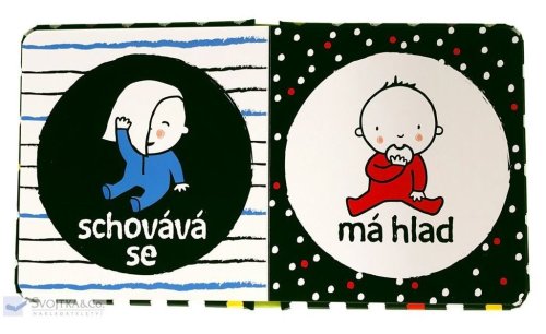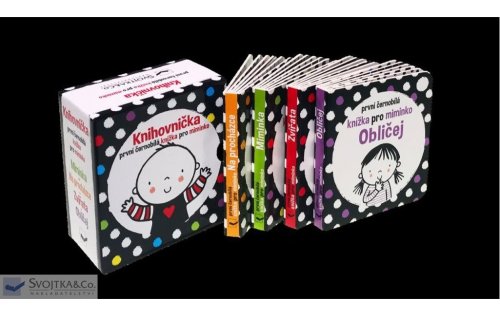 Souborné vydání čtyř oblíbených černobílých leporel. Tyto knížečky představují ideální první knížku pro vaše miminko. Velká je tak akorát do dětských ručiček, má oblé hrany a díky pevným stránkám vydrží i méně šetrné zacházení. Obrázky zvířátek, předmětů, miminek v různých situacích nebo jednotlivé části obličeje, uzpůsobené malému děťátku, si vaše miminko může prohlížet stále dokola. Černobílá varianta s jemnými barevnými prvky je pro správný vývoj zraku malého miminka vhodnější než pestrobarevné obrázky. Ukažte svému děťátku, jak má otáčet pevné stránky, a rozvíjejte tak u něj jemnou motoriku a koordinaci pohybu prstíků.