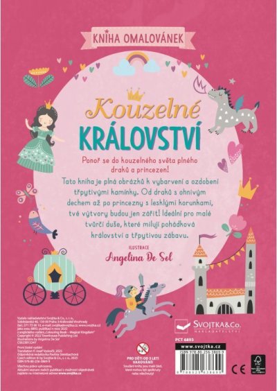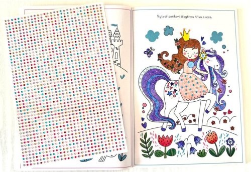 Ponoř se do kouzelného světa plného draků a princezen! Tato kniha je plná obrázků k vybarvení a ozdobení třpytivými kamínky. Od draků s ohnivým dechem až po princezny s lesklými korunkami, tvé výtvory budou jen zářit! Součástí je arch s více než 1400 barevnými samolepícími kamínky. Ideální pro malé tvůrčí duše, které milují pohádková království a třpytivou zábavu. Titul obsahuje: 48 + 1 list s lepicími kamínky Vazba: Brožovaná Rozměry: 29,5 x 21 cm ISBN: 978-80-256-3869-9 Vhodné pro děti od 3 let.
