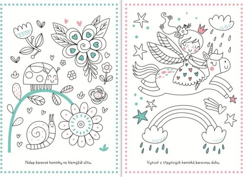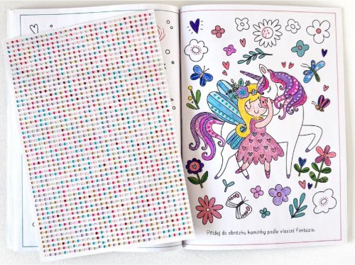 Připrav se na kouzelnou zábavu plnou třpytu! Tato kniha je plná obrázků k vybarvení a ozdobení třpytivými kamínky. Od jednorožců s blyštivou hřívou až po kouzelné lesní víly, tato knížka promění tvé výtvory v opravdové umělecké klenoty. Součástí je arch s více než 1400 barevnými samolepicími kamínky. Ideální pro všechny, kteří milují vše, co se třpytí! Titul obsahuje: 48 + 1 list s lepicími kamínky Vazba: Brožovaná Rozměry: 29,5 x 21 cm ISBN: 978-80-256-3868-2 Vhodné pro děti od 3 let.