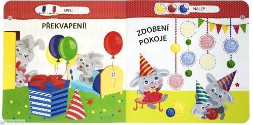 Oslav narozeniny spolu s malým zajíčkem! Překvapení! Malý zajíček má dnes narozeniny a už se moc těší. Kdo přijde na oslavu? Je potřeba vyzdobit pokoj a upéct dort. Kdo oslavence pobaví? Bude to klaun! Vše musíš ještě správně vybarvit, spojit a nalepit samolepky na ta správná místa. V této knížce se naši nejmenší naučí, jak to chodí na dětské narozeninové oslavě, díky jednoduchým aktivitám nejen se samolepkami. Tak honem, pusť se společně s malým zajíčkem do učení!