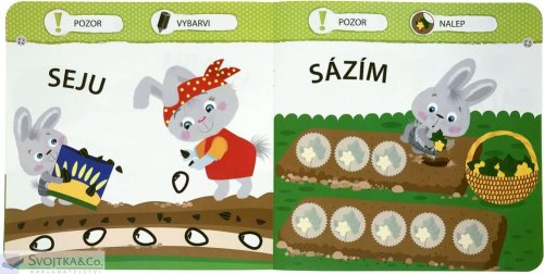 V této knížce najdou naši nejmenší malého zajíčka a plno jednoduchých aktivit, které jim pomohou poznat, jak to chodí na zahradě při pěstování ovoce a zeleniny. Nauč se s malým zajíčkem, jak se starat o zahradu! Jak se sází rostliny? Kdo ohlídá úrodu? Máš rád či ráda vlastní vypěstovanou zeleninu? Je moc dobrá. Staň se malým zahradníkem! Vše musíš ještě správně vybarvit, spojit a nalepit samolepky na ta správná místa. V této knížce se naši nejmenší naučí, jak to chodí na zahradě a na záhonu, díky jednoduchým aktivitám nejen se samolepkami. Tak honem, pusť se společně s malým zajíčkem do učení!
