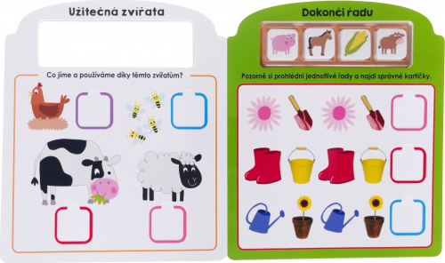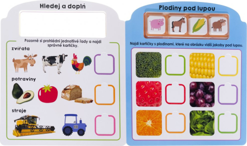 V této zábavné knize naleznete kartičky s různými obrázky na přiřazování a třídění. Děti si procvičí jak jemnou motoriku, tak si užijí mnoho zábavy. Tato kniha je ideální pomůckou pro děti, které si chtějí jak užít zábavu, tak si také potrápit své chytré hlavičky. Rozmanité aktivity na třídění a přiřazování kartiček s obrázky zvířat, strojů, potravin a dalších předmětů seznámí děti s barvami, zvířaty či prostředím farmy a procvičí i koordinaci oka a ruky. Počet stran: 10 Vazba: Leporelo ISBN: 978-80-256-3319-9 Ilustrační video