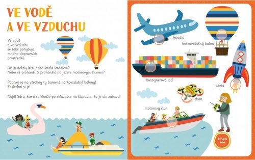 Poznej v této zvukové knize plné krásných ilustrací na více než 40 zvuků různých tematicky řazených dopravních prostředků a dalších strojů.