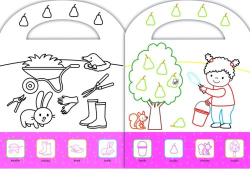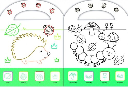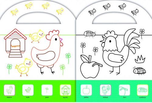 Omalovánkový sešit se spoustou samolepek k nalepování a vybarvování. Děti se seznámí s přírodou a říší zvířat a osvojí si nová slova.