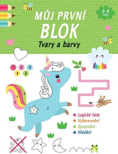 Tento zábavný blok s vytrhávacími stránkami nabízí nejrůznější aktivity na učení a rozpoznávání tvarů a barev.