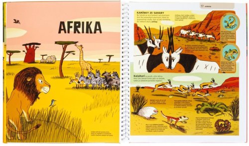 Rozevírací mapy jednotlivých kontinentů a originální ilustrace ukazují zvířata v jejich přirozených domovech. Podrobné stránky nabízejí pohled na různorodá prostředí od řek až po hory, s příběhy o neuvěřitelných zvířatech a rekordmanech ze světa zvířecí říše. Kniha je ideální pro děti ve věku 6 až 10 let, spojuje poutavý text s bohatými ilustracemi pro interaktivní učení.