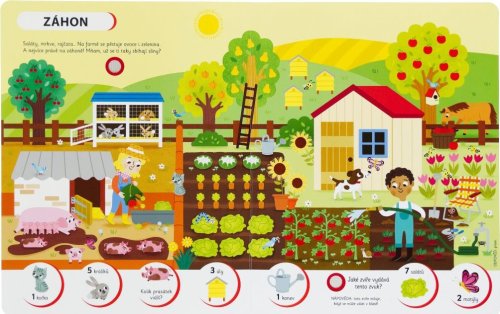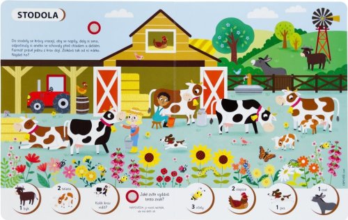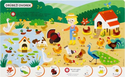 Hledej a poznávej s touto zvukovou knihou zvířata z rušné farmy! V různých částech farmy, od stodoly přes pastvinu až po drůbeží dvorek, se seznámíš s jejími obyvateli a dozvíš se i zajímavé informace. Na každé straně této krásně ilustrované knížky poslouchej nejrůznější zvuky a poznej, která zvířata je vydávají. Ale neboj! Dostaneš k tomu i nápovědy, které ti zvířata představí, a i zde se dozvíš další zajímavosti z farmy a ze zvířecí říše.