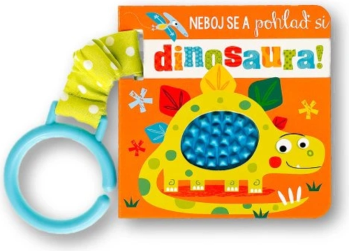 Mini dotyková knížka pro kočárek s motivy stegosaura a dalších dinosaurů. Se silikonovými prvky pro rozvoj hmatu.
