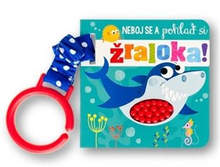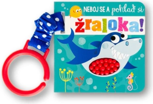 Mini dotyková knížka pro kočárek se žralokem a mořskými tvory. Silikonové prvky pomáhají rozvíjet hmat.