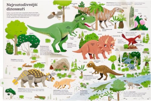 Kdy se dinosauři objevili? Jak se liší od ostatních zvířat? Měli peří? Proč vyhynuli? Jak vypadá práce paleontologa? Odpovědi na tyto a další otázky najdeš v této velké propracované knize s více než 50 pohyblivými prvky. Autorka Sandra Laboucarie se s pomocí paleontologa Yvese Laurenta ponořila do poutavého světa dinosaurů a čerpala z nejnovějších vědeckých výzkumů. Fascinující tvorové ožívají ve výrazných a detailních kresbách Benjamina Bécue, který se snaží vycházet z nejnovějších poznatků o podobě dinosaurů. Tato ilustrovaná kniha vám názorně ukáže svět dinosaurů, vysvětlí, jak se dinosauři postupně vyvíjeli až k dnešním ptákům, a představí práci paleontologů. Kniha je plná propracovaných ilustrací, odklápěcích okének a pohyblivých prvků, určených k šetrnému zacházení! Počet stran: 18 Vazba: Pevná Rok vydání: 2023 ISBN: 978-80-256-3346-5