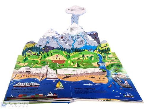 Největší a nejpropracovanější ilustrovaná kniha s pohyblivými prvky o planetě Zemi. Nabízí ti dlouhé hodiny hraní a objevování. Prozkoumej úchvatné a velice propracované stránky, při jejichž otáčení se doslova tají dech. Vystoupej po obloze až do výšky 12 000 metrů, rozevři stránku a nech vzniknout pohoří, zjisti, jak se pohybovaly tektonické desky, nahlédni do samotného jádra planety. Podívej se, jak člověk mění krajinu a využívá její zdroje k získání potravy, energie a nerostného bohatství. Jak se žije v různých částech naší planety – odklop okénka a zjisti, jaké rozdíly panují v jednotlivých podnebích na Zemi. Tato kniha z řady Nej... obsahuje více než 45 pohyblivých částí pro názorný zážitek z naší krásné planety, která nás nikdy nepřestane fascinovat a kterou je třeba chránit. Kniha je ručně vyrobená; aby pohyblivé prvky dlouho vydržely, vyžaduje jemnější zacházení. Vazba: Leporelo s pohyb. prvky