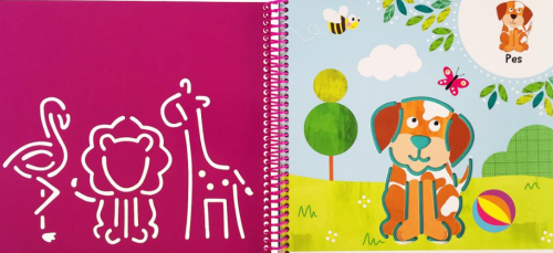 Obkreslovací kniha je skvělou učební pomůckou pro malé děti, které sice už umí držet tužku v ruce, ale ještě si se svými tahy nejsou úplně jisté. Pro děti, které by své výtvarné schopnosti chtěly posunout na další úroveň a chtěly se naučit kreslit konkrétní věci, v tomto případě zvířata. Kniha nabízí obrázky deseti zvířat různé obtížnosti kreslení. Na každé straně se dítě naučí kreslit jedno zvířátko, které si obkreslí a pak si výsledný obrázek domaluje podle vlastní fantazie. Široké průřezy na každé straně dovolují použít ostře ořezanou tužku, pero, fix i tlustější pastelky. Kniha je vyrobena z pevného, odolného materiálu, vydrží tedy hrubší zacházení, a díky podložce, která je součástí knihy a zasouvá se pod jednotlivé stránky, je možné ji opakovaně používat. Počet stran: 24 Vazba: Vazba se spirálou Rok vydání: 2021 ISBN: 978-80-256-2451-7