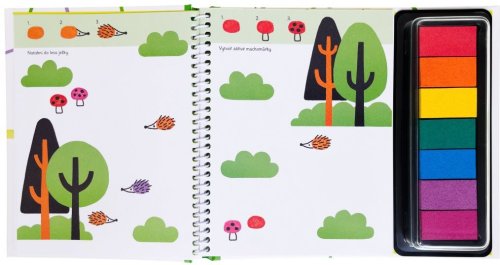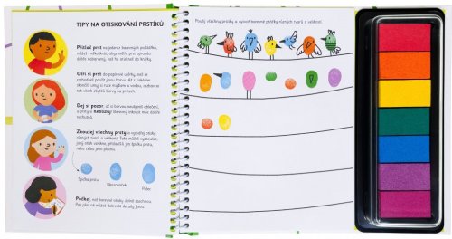 Tato knížka překypuje nápady na zábavné otiskování prstíků a nabízí dětem spoustu místa, které mohou zaplnit svými výtvory. Stačí odklopit víčko z barevných inkoustových polštářků a pustit se do hrátek s otisky. Kniha vybízí k tomu, aby děti zkoušely všechny prsty a vytvářely otisky různých tvarů a velikostí. Po zaschnutí pak mohou dokreslit vlastní detaily. Díky jednoduchým pokynům se děti naučí natisknout a následně dotvořit veverky na větev, myšky na klas pšenice, ryby pod vodu nebo létající netopýry. Přidají ocasní pera pávovi, šupiny krokodýlovi a strakatou srst kravám. Barvy jsou vodou omyvatelné, nemusíte se tedy bát skvrn. Kniha podněcuje děti k tvořivosti, fantazii a rozvoji jemné motoriky, poznávání barev a zaměření se na detaily Počet stran: 64 Vazba: pracovní sešit Rok vydání: 2023 ISBN: 978-80-256-3429-5