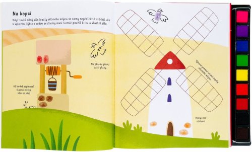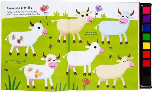 Na každé stránce s tematikou farmy a hospodářskými zvířaty se můžeš umělecky vyjádřit a obrázky zaplnit i podle své vlastní fantazie. Hotové otisky můžeš dokončit pomocí fixu a přidat jim drobné, nápadité detaily - vytvářej kuřátka, saláty, králíky či balíky sena. Různé prsty dělají různé otisky, tak na nic nečekej a pusť se do tvoření.
