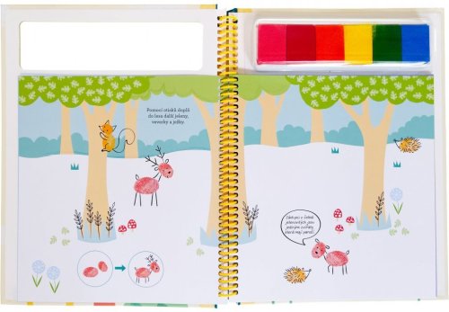Používej všechny prstíky a vytvářej různé tvary a velikosti otisků. Po uschnutí otisků je pomocí fixů můžeš dokreslit a dotvořit jim spoustu osobitých detailů. Díky snadným a jasným postupům se děti naučí jeleny s mohutným parožím, nebojácné tygry, hravé tučňáky, hbité klokany či drobné kraby. Kniha podporuje rozvoj jemné motoriky, koordinaci oka a ruky a především povzbuzuje tvořivost a představivost.