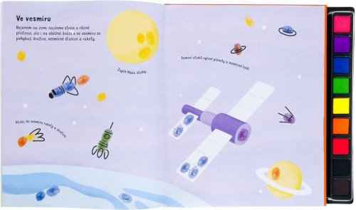 Tato kreativní kniha obsahuje spoustu nápadů a návodů na vytvoření zábavných obrázků pomocí barevných otisků prstíků. Na každé stránce s tematikou dopravních prostředků či nejrůznějších vozidel se můžeš umělecky vyjádřit a obrázky zaplnit i podle své vlastní fantazie. Hotové otisky můžeš dokončit pomocí fixu a přidat jim drobné, nápadité detaily - vytvářej jeřáby, letadla, lodě či psí spřežení. Různé prsty dělají různé otisky, tak na nic nečekej a pusť se do tvoření!