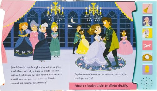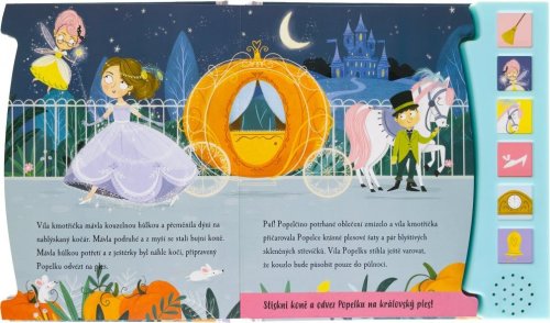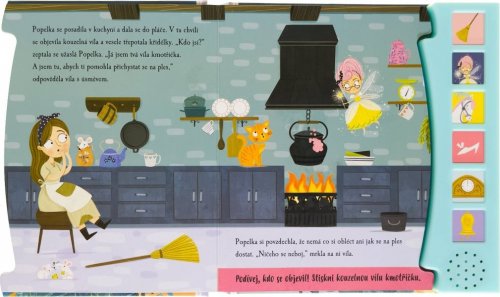 Stiskni tlačítko, přehraj si okouzlující zvuk a přenes se s touto krásně ilustrovanou knihou do klasické pohádky o Popelce.