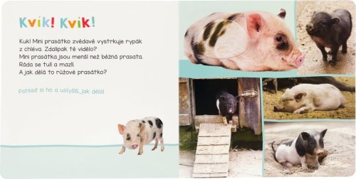 Jak dělá poník? A jak ovečky? Pohlaď si jejich jemnou srst a zjisti, jak dělají. V knize na tebe čekají zvířecí kamarádi na mnoha krásných fotografiích, z nichž některé si můžeš dokonce pohladit díky hmatovým prvkům a poslechnout si skutečné zvířecí zvuky. Dotykový prvek na obrázcích dětem usnadní jejich poznávání a též si tak procvičí i ostatní smysly.