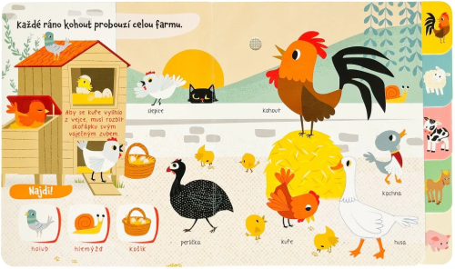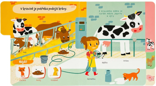 Zaposlouchej se do zvuků zvířat z farmy v tomto hravém leporelu. Prohlédni si jednotlivé scenérie, poznej domácí zvířata, procvičuj si postřeh při hledání předmětů a zvířat v obrázku a nauč se o životě na farmě pozoruhodné zajímavosti. Česky namluvené věty pomohou dětem zvířata lépe a rychleji poznat. Stačí zmáčknout tlačítko a zábava může začít. Postranní záložky pomůžou s lepší orientací v knížce. Počet stran: 12 Vazba: Leporelo zvukové Rok vydání: 2024 ISBN: 978-80-256-3687-9