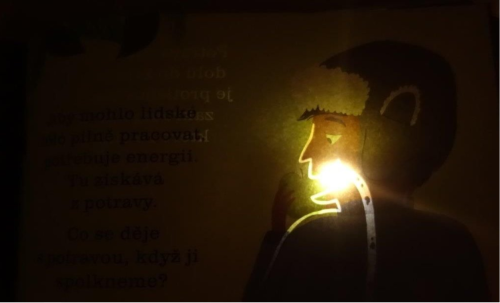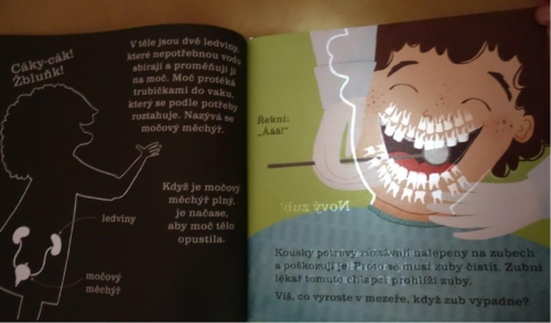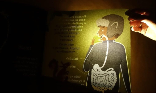 Přidrž si stránky knihy proti světlu nebo je prosviť zespodu baterkou… nahlédneš přímo dovnitř lidského těla! Posviť si na to, jak to v lidském těle funguje. Víš, co se lidem odehrává v těle pod kůží? Představ si, že by stačilo posvítit si na to baterkou a vše uvidíš jako na dlani! Tak přesně tohle je teď možné díky této fantasticky zábavné knížce, která odhaluje skrytá tajemství lidského těla. Zkoumej zblízka lidské tělo a objevuj, jak je úžasné! Podívej se důkladně na to, jak dýcháme a jak jíme, jak nám svaly pomáhají se pohybovat a jak nám srdce pumpuje krev do celého těla! Objev skryté zázraky lidského těla. Připrav si svítilnu a vydej se objevovat skrytý svět plný velkých překvapení. Ideální čtení pod peřinu!