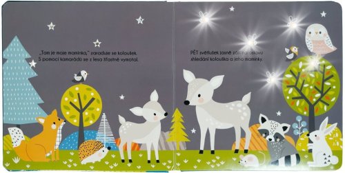 Když otevřou knihu a rozsvítí světélka, budou s kolouškem hledat cestu z lesa ven, za maminkou, překonávat překážky a rozvíjet smyslové vnímání skrz počítání rozzářených světlušek.