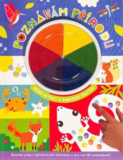 Otiskování prstíků a dolepování samolepek na téma příroda a zvířata s celého světa. Obsahuje také polštářky s barvou a vytlačovací obrázky.