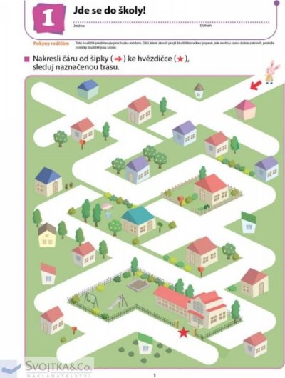 V tomto sešitě, založeném na výukové metodě Kumon, dítě rozvíjí prostorové vnímání a procvičuje si schopnost ovládat tužku, dovednost potřebnou pro psaní písmen a číslic. Nejprve bude vaše dítě kreslit cestu rozmanitými bludišti dle vyznačeného směru. Postupně, jak bude dítě při práci s tužkou čím dál obratnější, bude pracovat na složitějších bludištích. Procházením bludišti se zábavným způsobem učí, jak správně držet a používat tužku. Postupem od jednoduššího ke složitějšímu je dítě motivováno a není na něj vyvíjen žádný tlak, který by jej frustroval. Samo chce pokračovat v procvičování a na konci sešitu je jeho pokrok znatelný. Při procházení bludišti si dítě také osvojuje schopnost logického úsudku, rozumového zdůvodnění a vyhodnocení, neboť musí neustále přemýšlet a vyhodnocovat, jak vyjít z bludiště ven. Sešit snese i drsnější zacházení a opakované gumování.