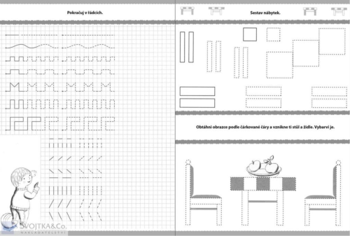 Aby se vaše dítě naučilo správně a úhledně psát, potřebuje rozvinout jemnou motoriku tato kniha obsahuje soubor cvičení pro malé děti se zajímavými úkoly. Aby se vaše dítě naučilo správně a úhledně psát, je nutné rozvíjet jemnou motoriku ruky od útlého věku. Tato kniha obsahuje soubor různých zábavných cvičení pro malé děti se zajímavými úkoly pro procvičování ruky. Když si vaše dítě před vstupem do první třídy procvičí všechny úkoly z této knížky, tak si nejen vytrénuje prsty a ruku, ale zdokonalí i svoji paměť a schopnost soustředění. Přejeme vám hodně zábavy a úspěchů!