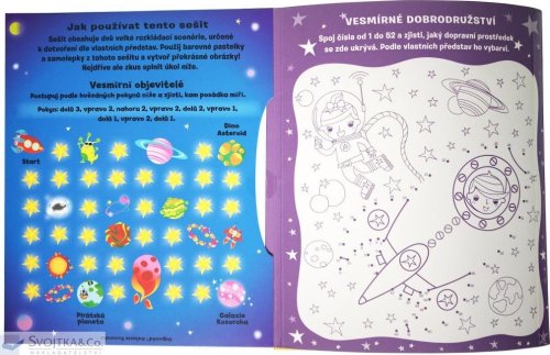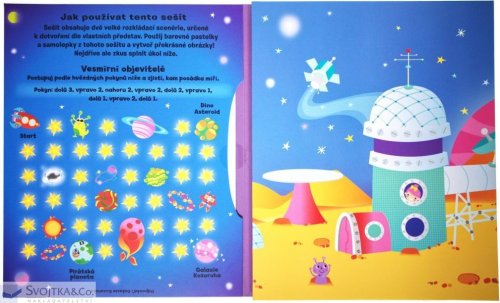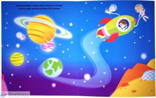 Astronauti, rakety a vzdálené hvězdy a planety na tebe čekají na půvabných samolepkách. Nalep, vybarvi, hraj si. Na nic nečekej a pojď objevovat tajemný a úchvatný vesmír! Více než 300 samolepek a přes 60 pěnových nálepek najdeš v této knížce se dvěma rozkládacími scenériemi. Popusť uzdu fantazii a kreativitě a pojď prozkoumat nekonečný vesmír. Přátelští mimozemšťané, superrychlé rakety a zvědaví astronauti na tebe čekají na všech samolepkách. Počet stran: 10 Vazba: Sešit Rok vydání: 2020 ISBN: 978-80-256-2844-7