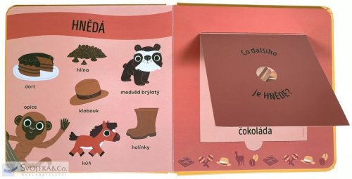 Nauč se poznávat a pojmenovávat jednotlivé barvy i předměty. Přetři daný obrázek rukou, uvolni vůni a zjisti, co se ukrývá pod okénkem. Toto voňavé leporelo děti seznámí s různými předměty, potravinami a zvířaty z celého světa.