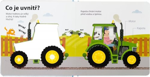 Proč je traktor tak užitečný? A z jakých dílů se skládá? Leporelo pro malé farmáře obsahuje ilustrace s výřezy a jednoduché, základní informace o traktorech.
