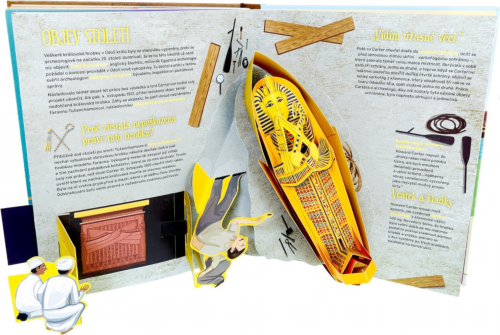 K příležitosti významného 100. výročí objevu hrobky faraona Tutanchamona vychází jedinečná prostorová encyklopedie se spoustou velkých pop-up ilustrací. Vztyčí se před vámi egyptské skály - vydejte se tedy do Údolí králů a sledujte při práci Egypťany, provádějící mumifikaci. Čeká vás nenapodobitelný knižní zážitek. Při návštěvě faraonova chrámu budete moct pozvednout jeho legendární masku a pohlédnout mu přímo do očí. Nebojíte se faraonovy kletby? Pokud se rozhodnete pro seznámení s Tutanchamonem prostřednictvím této knihy, můžete být v klidu a celou archeologickou výpravu si užít.