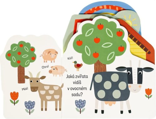 Zpod dalších stránek vykukují obrázky, které vzbudí u malých čtenářů zvědavost - co asi bude na další a další stránce?