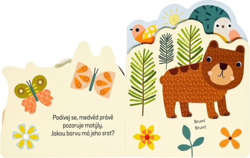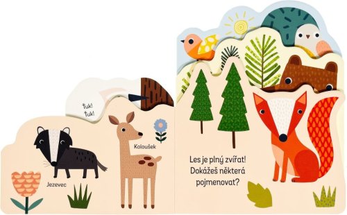 Kniha s milými ilustracemi obsahuje popisky zvířat z lesa a doplňující otázky, a tak si můžete s dítětem povídat o lesních zvířátkách a pomáhat mu rozšiřovat slovní zásobu a rozvíjet fantazii.