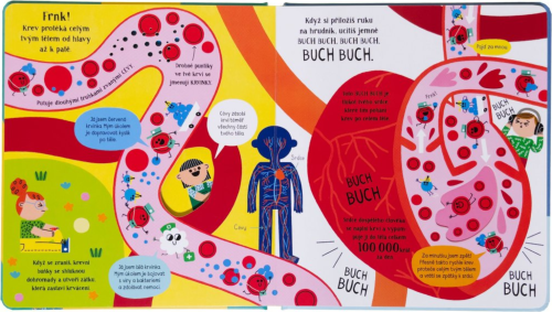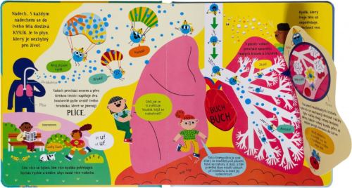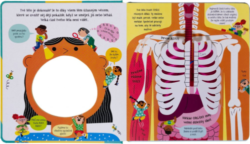 Leporelo s odklápěcími okénky. Kniha představí dětem hravou, avšak poučnou formou, co se odehrává v našem těle a jak funguje. Nahlédneme na kosti, svaly a orgány. Trefné popisky a zábavné obrázky, které doprovází fakta o lidském těle a jeho funkcích. Pomáhá snadněji si zapamatovat nové informace. Vzbuzuje zájem o další objevování, lékařství a přírodní vědy.