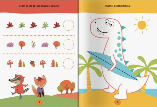 Učím se hrou - to je ideální přístup, jak dětem zprostředkovat poznání. Nejlíp, pokud je k tomu přimícháno i trošku zábavy. Tu určitě objevíte v tomto pracovním sešitu pro děti ve věku tři až čtyři roky. Seznámíte se s legrační veverkou a vtipným dinosaurem, s plameňákem, s roztomilými motýly a se spoustou dalších barevných zvířátek. Ti všichni na vás čekají v tomto sešitě plném her. Hledání, vybarvování a další úkoly - to je to pravé učení hrou! U této sbírky aktivit pro děti od 3 let se malí předškoláci zasmějí i zabaví! Připraveni? Jupí, jdeme na to!